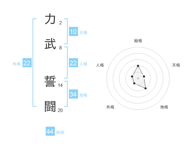 力武 誓闘さんを姓名の画数から五運を鑑定
