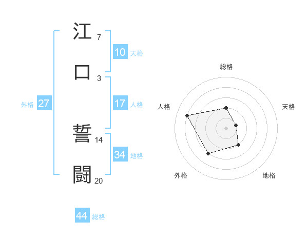 江口 誓闘さんの総格は44画の2点!