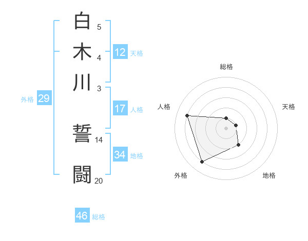 白木川 誓闘さんを姓名の画数から五運を鑑定