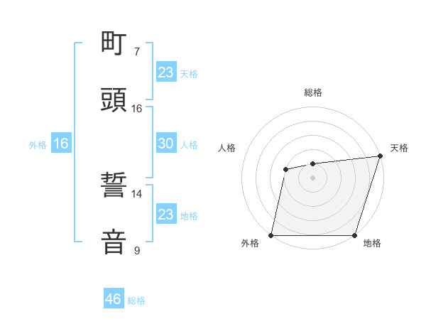 町頭 誓音さんを姓名の画数から五運を鑑定