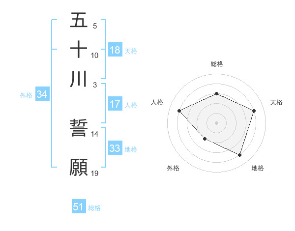 五十川 誓願さんを姓名の画数から五運を鑑定