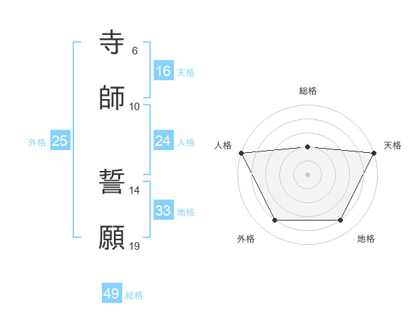 寺師 誓願さんを姓名の画数から五運を鑑定