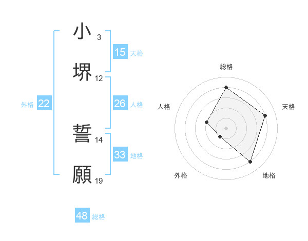 小堺 誓願さんを姓名の画数から五運を鑑定