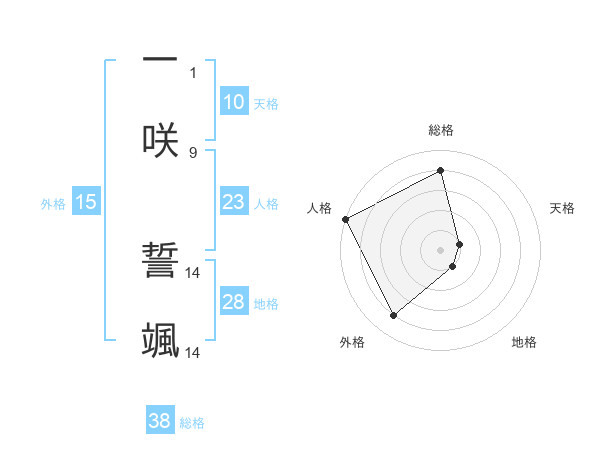 一咲 誓颯さんの総格は38画の4点!