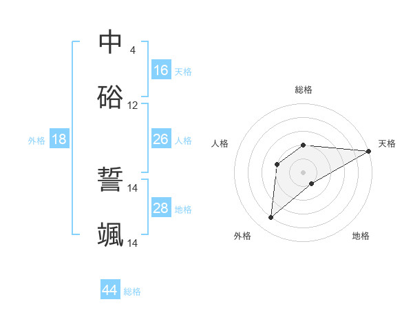 中硲 誓颯さんを姓名の画数から五運を鑑定