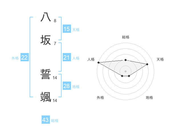 八坂 誓颯さんの総格は43画の2点!