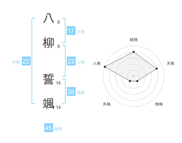 八柳 誓颯さんの総格は45画の4点!