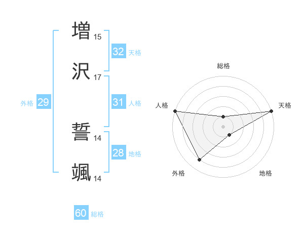 増沢 誓颯さんの天格は32画の5点!