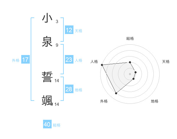小泉 誓颯さんを姓名の画数から五運を鑑定