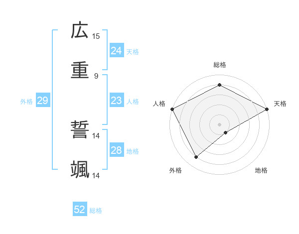 広重 誓颯さんの総格は52画の4点!