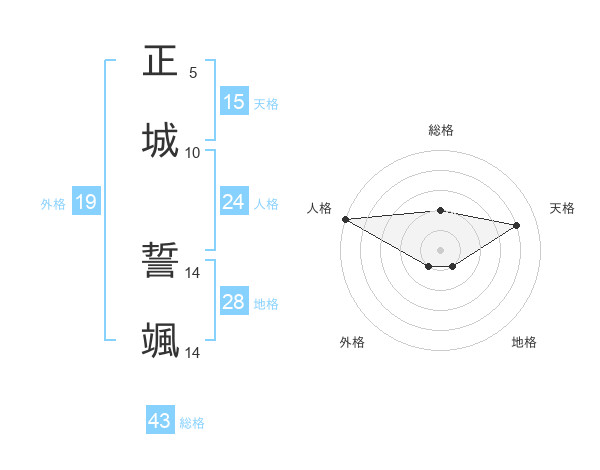 正城 誓颯さんの総格は43画の2点!