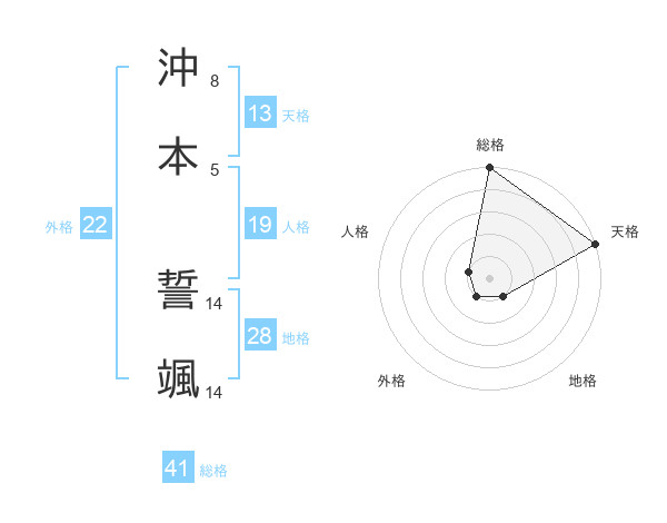 沖本 誓颯さんを姓名の画数から五運を鑑定