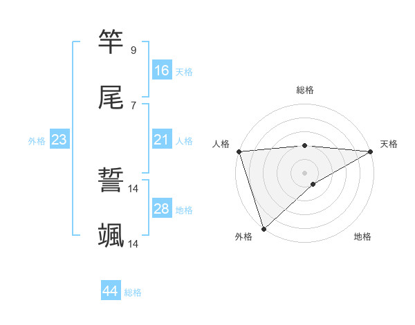 竿尾 誓颯さんを姓名の画数から五運を鑑定