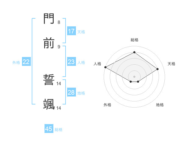 門前 誓颯さんの総格は45画の4点!