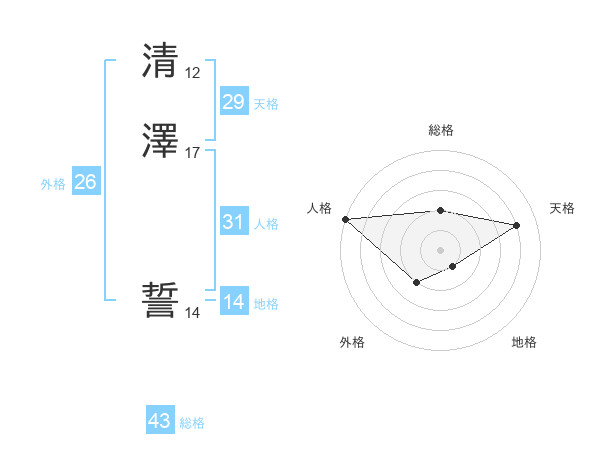 清澤 誓さんの総格は43画の2点!