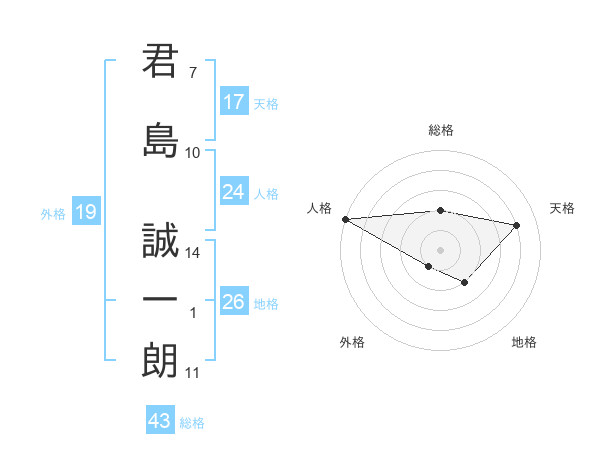 君島 誠一朗さんの総格は43画の2点!