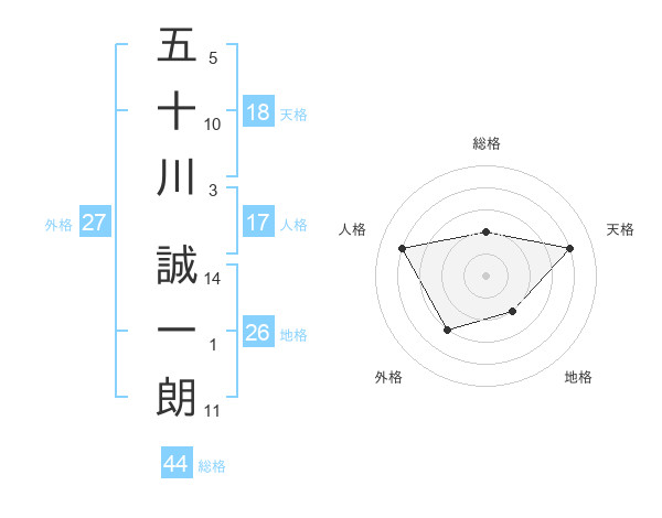 五十川 誠一朗さんの総格は44画の2点!
