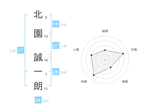 北園 誠一朗さんを姓名の画数から五運を鑑定