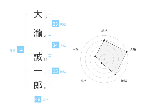 大瀧 誠一郎さんの天格は23画の5点!