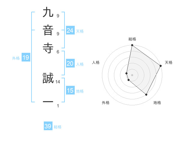 九音寺 誠一さんの総格は39画の5点!