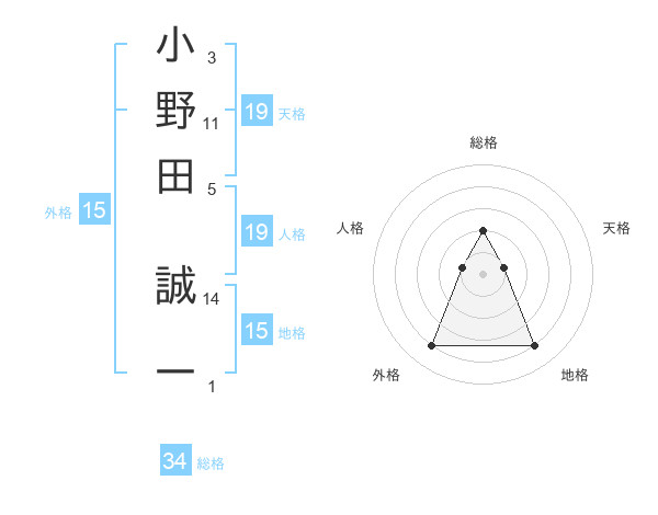 小野田 誠一さんを姓名の画数から五運を鑑定