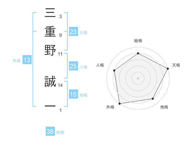 三重野 誠一さんの外格は13画の5点!