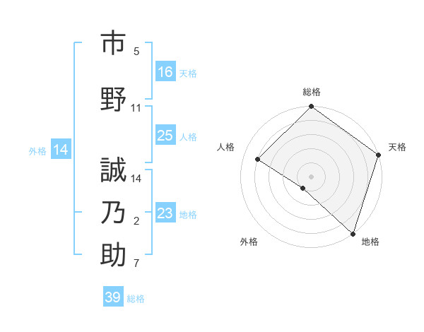 市野 誠乃助さんを姓名の画数から五運を鑑定
