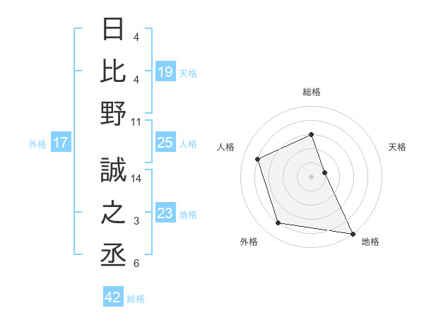 日比野 誠之丞さんの外格は17画の4点