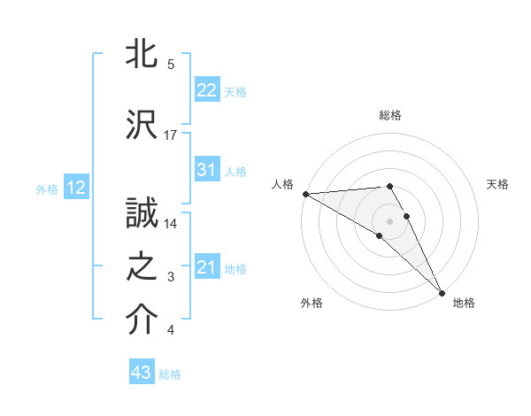 北沢 誠之介さんを姓名の画数から五運を鑑定