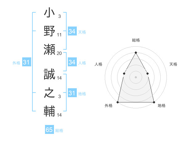 小野瀬 誠之輔さんを姓名の画数から五運を鑑定