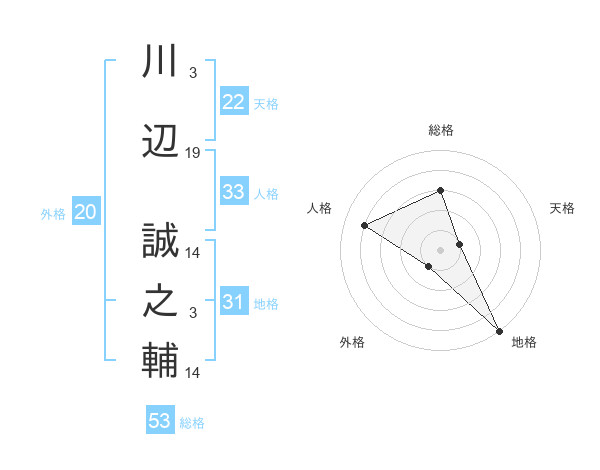 川辺 誠之輔さんの総格は53画の3点!