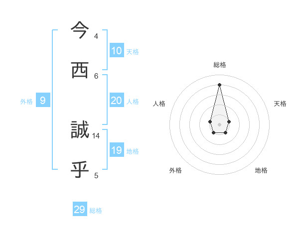 今西 誠乎さんを姓名の画数から五運を鑑定