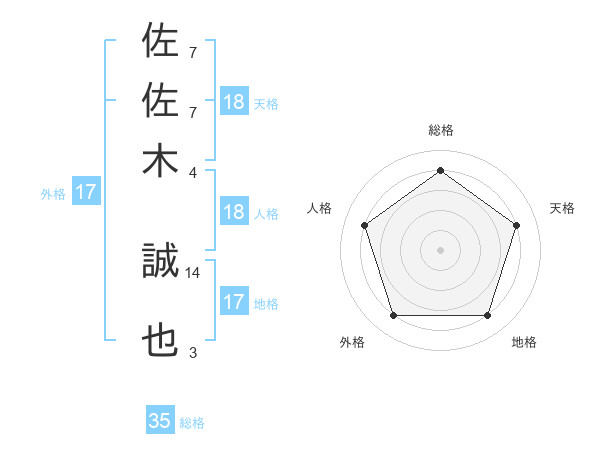 佐佐木 誠也さんの天格は18画の4点!