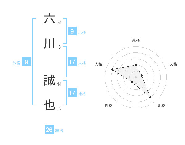 六川 誠也さんの総格は26画の2点!