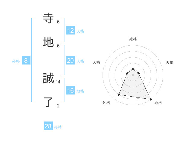 寺地 誠了さんを姓名の画数から五運を鑑定