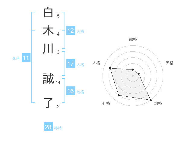 白木川 誠了さんを姓名の画数から五運を鑑定