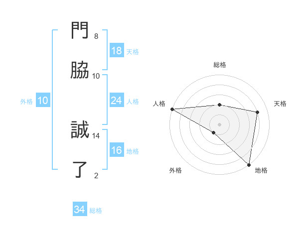 門脇 誠了さんの総格は34画の2点!