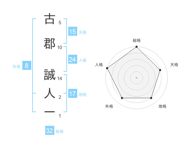 古郡 誠人ーさんの総格は32画の5点!