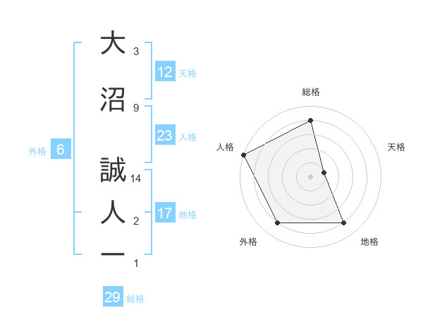 大沼 誠人ーさんの総格は29画の4点!