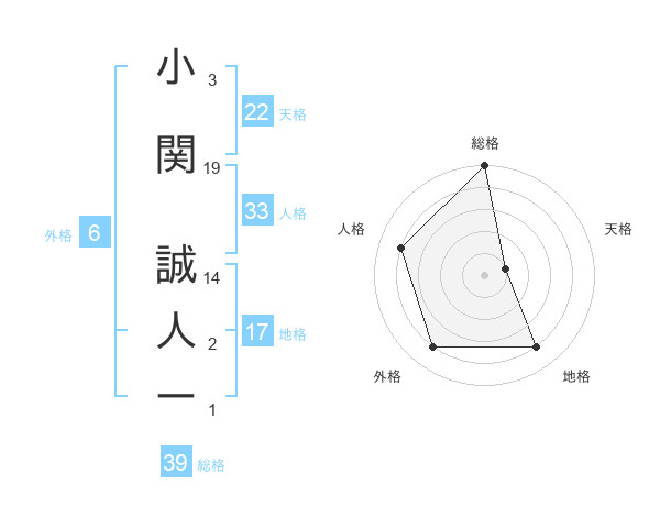 小関 誠人ーさんの総格は39画の5点