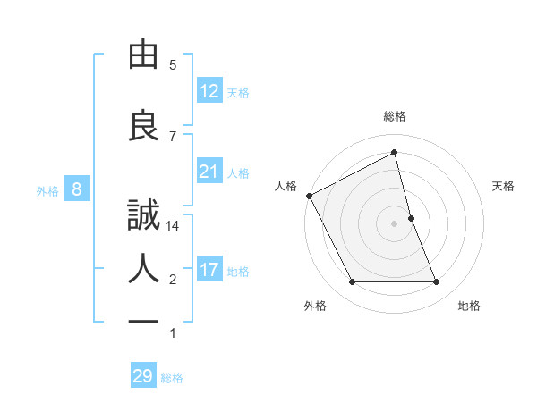 由良 誠人ーさんを姓名の画数から五運を鑑定