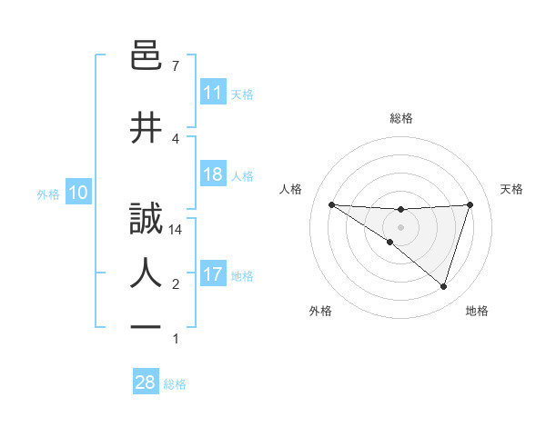 邑井 誠人ーさんを姓名の画数から五運を鑑定