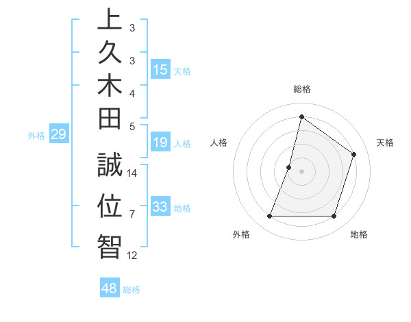 上久木田 誠位智さんを姓名の画数から五運を鑑定