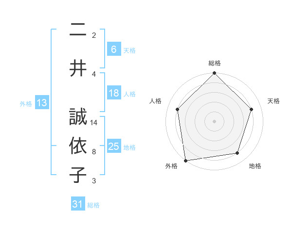 二井 誠依子さんの総格は31画の5点!