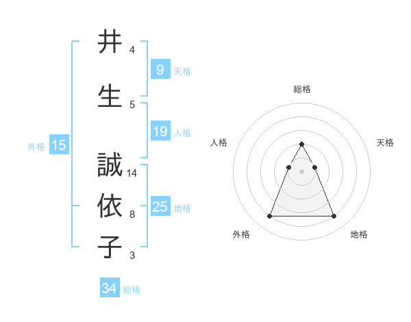 井生 誠依子さんの総格は34画の2点!