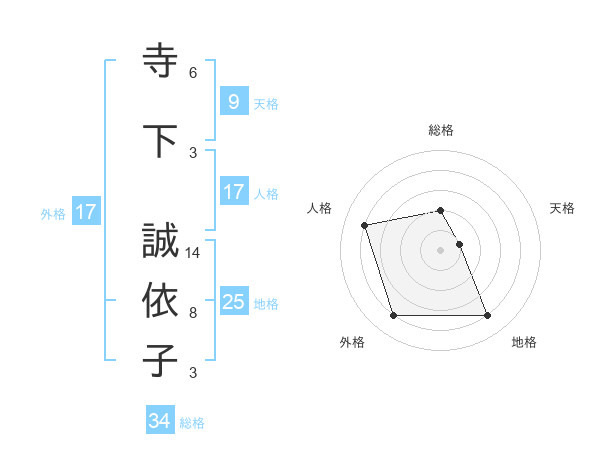 寺下 誠依子さんの外格は17画の4点!