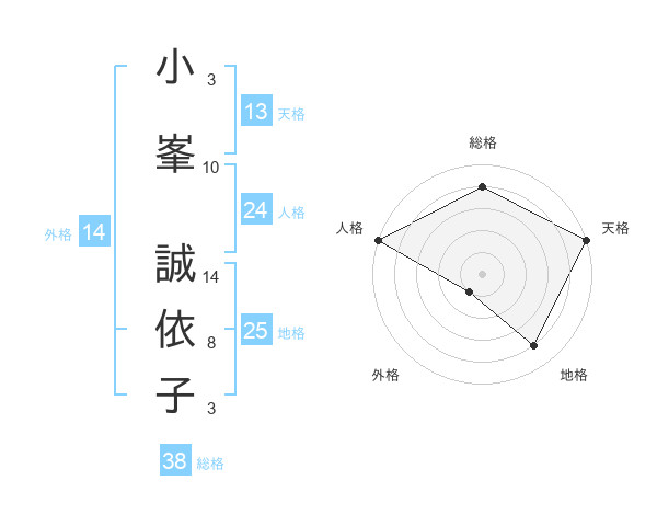 小峯 誠依子さんの総格は38画の4点!