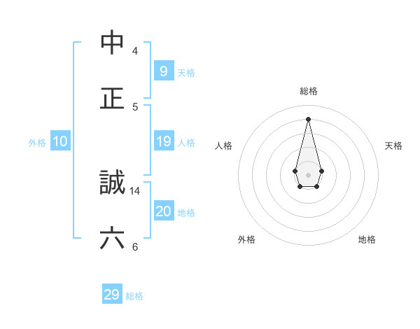 中正 誠六さんの総格は29画の4点!