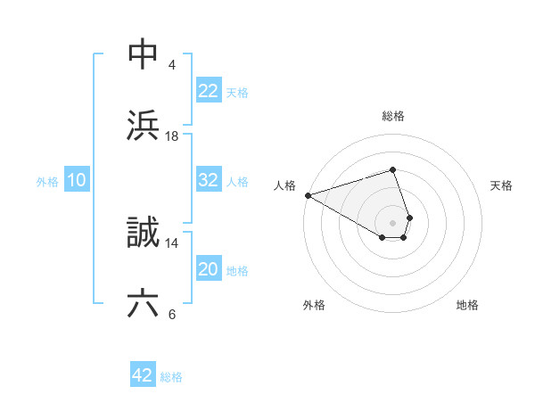 中浜 誠六さんの総格は42画の3点!