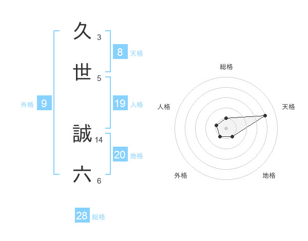 久世 誠六さんの総格は28画の1点!